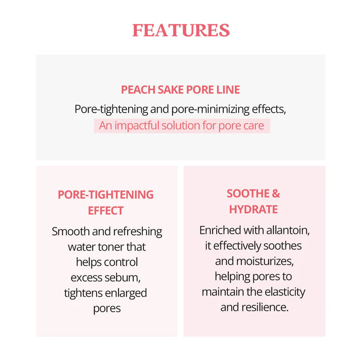 Der SKINFOOD Peach Sake Pore Toner ist ein Talgkontrolltoner, der überschüssiges Öl bekämpft und das Erscheinungsbild der Poren minimiert. Dieser Porentoner wurde speziell mit Pfirsichextrakt und japanischem Sake formuliert, die zusammenwirken, um die Haut zu reinigen und ihr ein erfrischtes Gefühl zu verleihen.